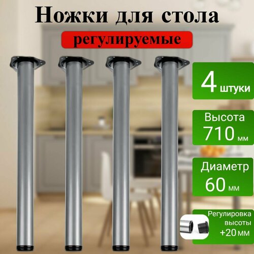 Ножки для стола регулируемые 60*710 мм, матовый хром, 4 шт.