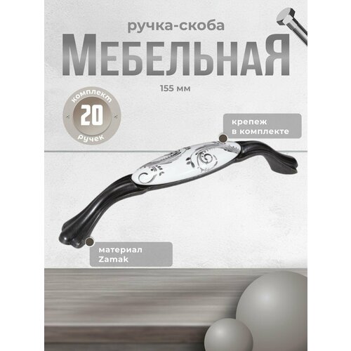 Ручка-скоба мебельная BRANTE RS.1433.128. BK керамика-чёрный никель, комплект 20 шт, ручка для шкафов, ящиков, комодов, для кухонного гарнитура, для мебели, фурнитура для шкафа
