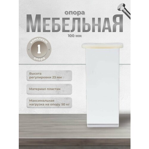 Ножки для мебели регулируемые D-50 мм Н-100 ДК12 белые, комплект 2 шт, опора мебельная для кухни, стола, шкафа, кровати