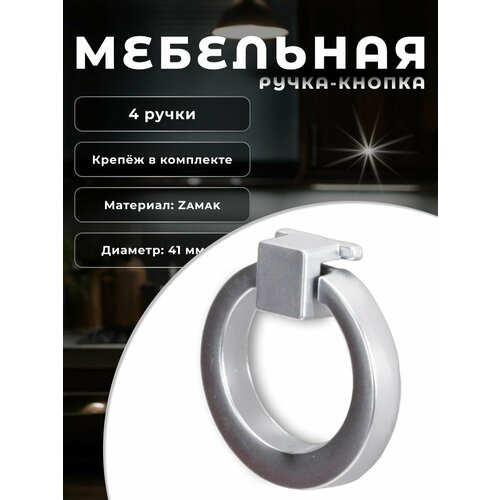 Ручка-кнопка мебельная BRANTE RK.1312.39 SC матовый хром, комплект 4 шт, ручка для шкафов, комодов, для кухонного гарнитура, для мебели