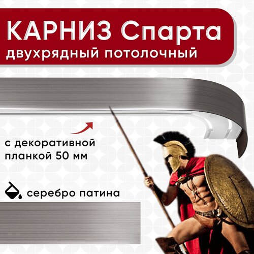 Карниз двухрядный потолочный с декоративной планкой (бленда 50мм), пластмассовый, шинный, Спарта серебро патина 250см