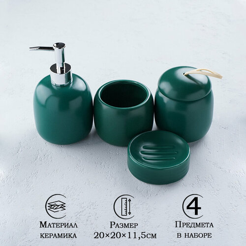 Набор аксессуаров для ванной комнаты SAVANNA Monro, 4 предмета (мыльница, дозатор для мыла 450 мл, стакан, баночка), цвет зелёный