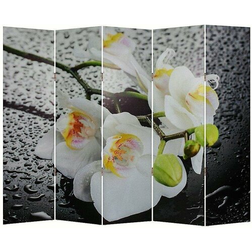 Ширма RB 1111-5 Белая орхидея и капли 5 панелей Белая орхидея и капли