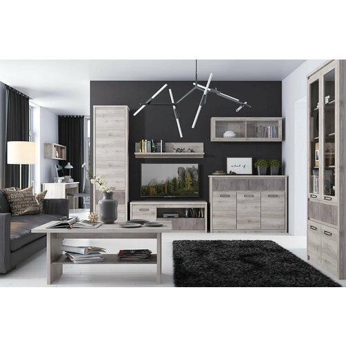Модульная гостиная "Бери Комп.2", дуб крафт золотой/белое дерево
