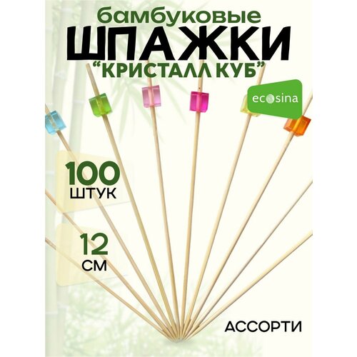 Шпажки деревянные Ecosina бамбуковые "Куб Кристалл Ассорти" 12 см