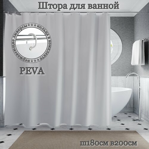 Штора для ванной комнаты INTERIORHOME PEVA, Ш180хВ200см, белая, с кольцами