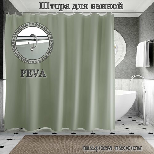 Штора для ванной INTERIORHOME, Ш240хВ200см, светло-зеленая, материал PEVA