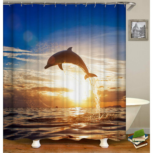 Штора (занавеска) для ванной / душа водоотталкивающая тканевая с кольцами 180 x 180 см Дельфин