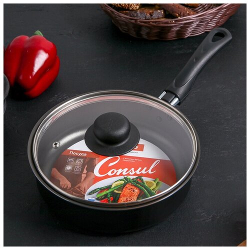 SCOVO Сотейник Consul, 1,5 л, d=20 см, стеклянная крышка, антипригарное покрытие, цвет чёрный