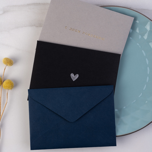 Набор конвертов с тисненеием "Сердечко, с Днем Рождения, темно-синий"