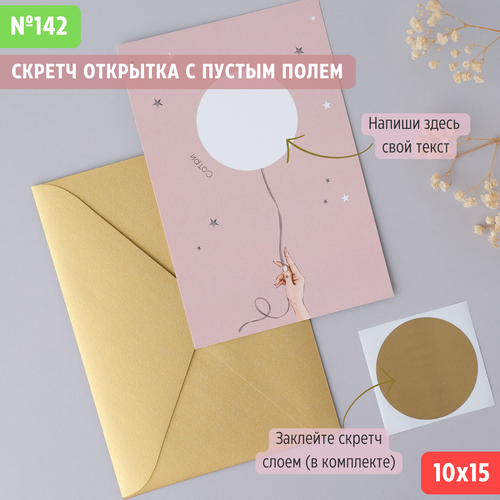 Открытка с конвертом + скретч слой "Ваш текст в шарике" (розовая)