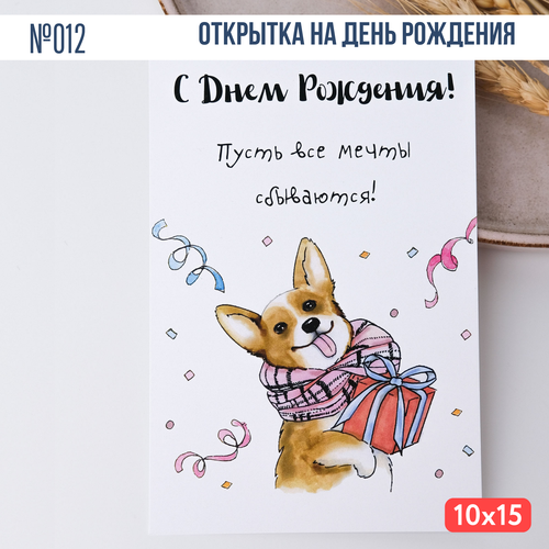 Открытка с конвертом "С Днем рождения! Пусть все мечты сбываются!" Собака Корги