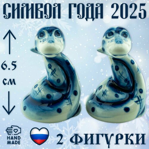 Сувенир Фигурка Змея Удав 6.5 см 2 штуки (Гжель) Символ года 2025
