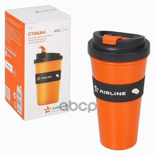 Стакан Для Кофе И Др. Напитков, Герм. Крышка, 430 Мл, Пластик, Черн./Оранж.(It-14) AIRLINE арт. IT-14