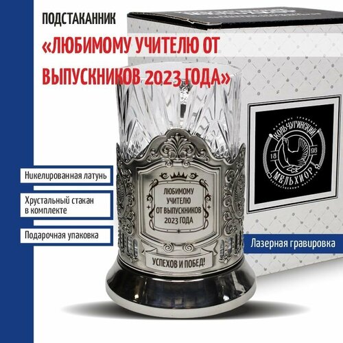 Кольчугинский мельхиор Подстаканник "Любимому учителю от выпускников 2023 года" со стаканом (Кольчугино)