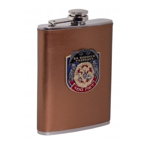 Нержавеющая фляжка в коже с накладкой "Военная разведка"
