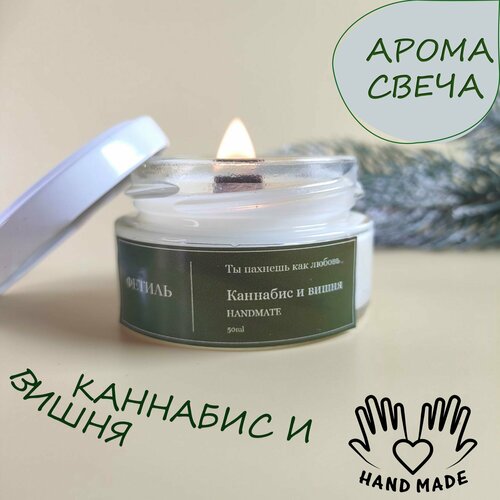 Ароматическая свеча из кокосового воска "Каннабис и вишня" 50 мл