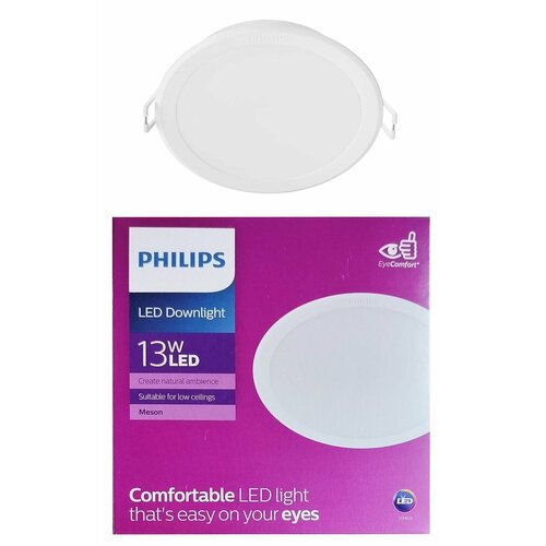 Встраиваемый светильник 13W 4000K WH 960lm d-125 D-140 H-47 Свет Дневной белый. Круглая светодиодная панель 59464 MESON 125 Philips, уп. 1шт