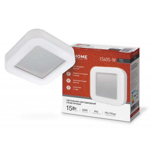 Светильник светодиодный серии RING-1540S-W 15Вт 230В 4000К 910Лм 190мм IP65 квадрат IN HOME
