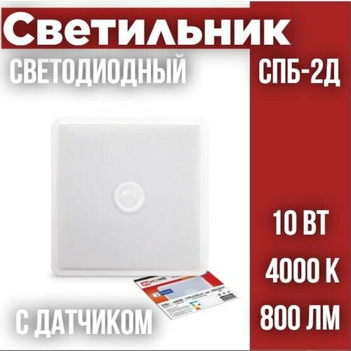 Светильник светодиодный СПБ-2Д-КВАДРАТ 10Вт 230В 4000К 800лм 170мм с настраиваемым датчиком белый IN HOME