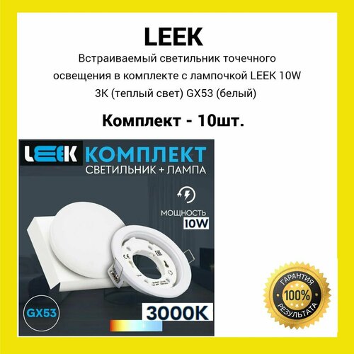 Встраиваемый светильник точечного освещения в комплекте с лампочкой LEEK 10W 3K (теплый свет) GX53 (белый) (10шт.)
