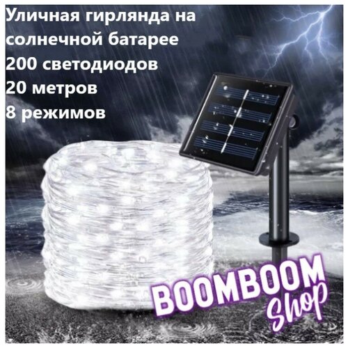 Светодиодная гирлянда уличная на солнечной батареи 200 ламп 22 метров 8 режимов