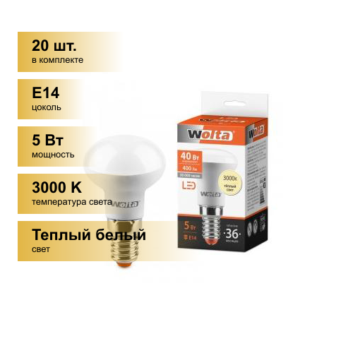 (20 шт.) Светодиодная лампочка Wolta лампа св/д R39 E14 5W(400Lm) 3000K 2K 69X39 25Y39R5E14