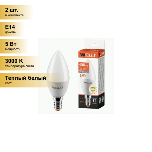 (2 шт.) Светодиодная лампочка Wolta лампа св/д свеча С37 E14 5W (400lm) 3000К 3K 102x38 25YC5E14
