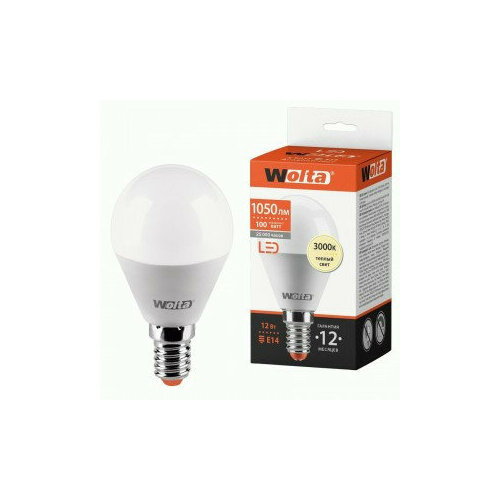 Светодиодная LED лампа WOLTA лампа Шар G45 E14 12W (1050lm) 3000K 2K 25Y45GL12E14 92х45х45 (упаковка 12 штук)