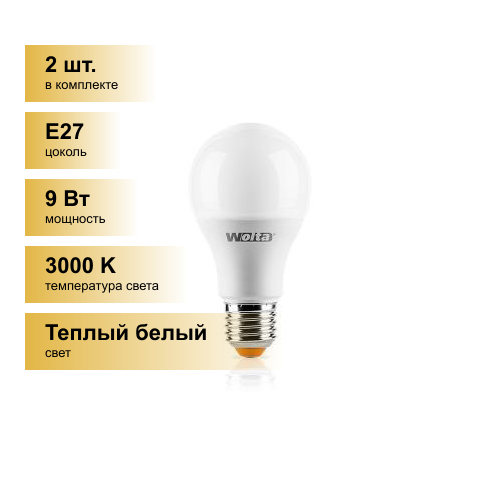 (2 шт.) Светодиодная лампочка Wolta лампа св/д ЛОН A60 E27 9W(800lm) 3000K 2K 110x60 25Y60BL9E27