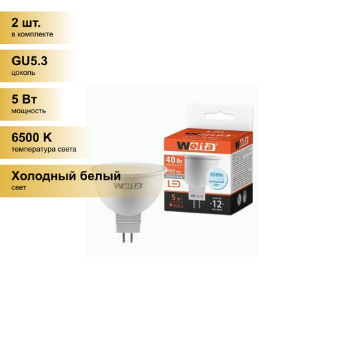 (2 шт.) Светодиодная лампочка Wolta лампа св/д MR16 GU5.3 220V 5W (400lm) 6500К 6K 50x55x55 25WMR16-220-5GU5.37