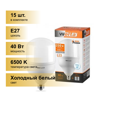 (15 шт.) Светодиодная лампочка Wolta лампа св/д высокомощн. HP E27/E40 40W(3500Lm) 6500K 6K 214x118 25WHP40E27/40