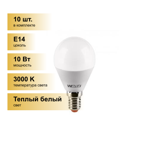 (10 шт.) Светодиодная лампочка Wolta лампа св/д шар G45 E14 10W(900Lm) 3000K 2K 94X45 25Y45GL10E14