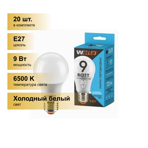 (20 шт.) Светодиодная лампочка Wolta LX лампа св/д ЛОН A60 E27 9W(720llm) 6500К 6K 112x61x61 30W60BL9E27