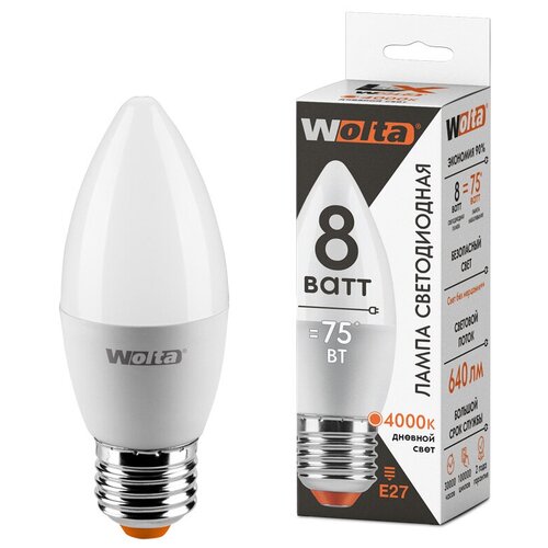 Лампа светодиодная 8W 30SC8E27 Е27 свеча 4000К нейтр БЕЛ металл/пластик WOLTA