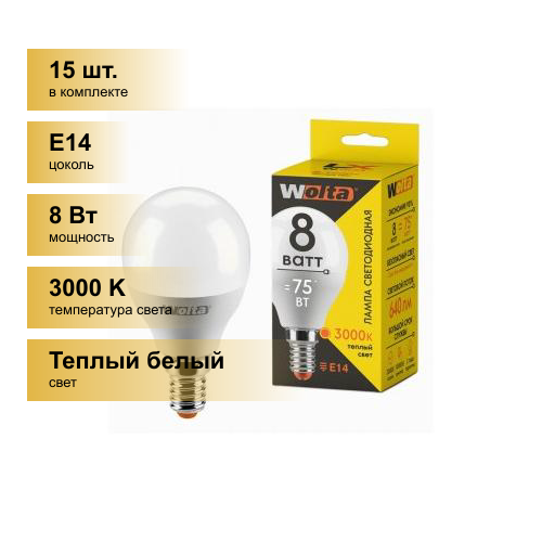 (15 шт.) Светодиодная лампочка Wolta LX лампа св/д шар G45 E14 8W(640llm) 3000К 2K 92x48x48 30Y45GL8E14