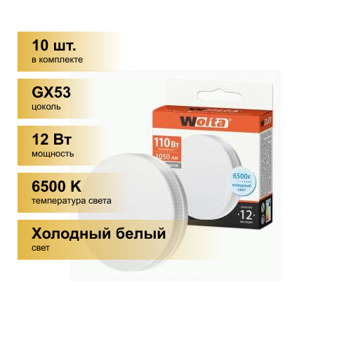 (10 шт.) Светодиодная лампочка Wolta лампа св/д GX53 12W (1050lm) 6500К 6K 22x74x74 25W75R12GX53