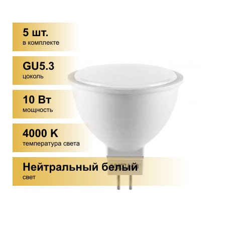 (5 шт.) Светодиодная лампочка Wolta лампа св/д MR16 GU5.3 220V 10W(825lm) 4000K 4K матов 52X50 25SMR16-220-10GU5.3