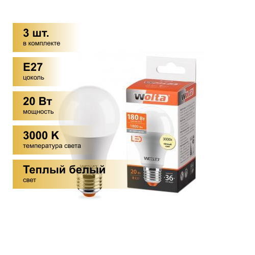 (3 шт.) Светодиодная лампочка Wolta лампа св/д ЛОН A65 E27 20W(1800lm) 3000K 2K 122x65 25Y65BL20E27
