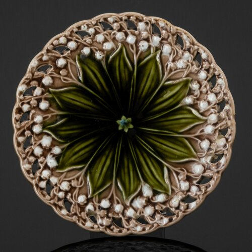 Тарелка декоративная с рельефным изображением ландышей, фаянс, роспись