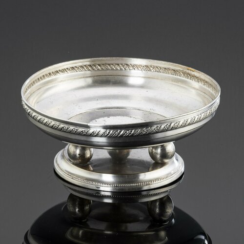 Фруктовница на шарообразных ножках, установленных на основание, мельхиор (медь-никель), Западная Европа, 1930-1950 гг.