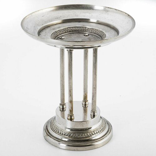 Фруктовница, стилизованная под ротонду с колоннами, латунь, серебрение