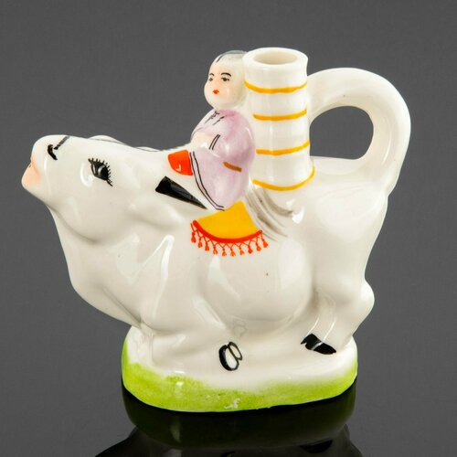 Штоф "Бодхисатва на быке", керамика, роспись, Монголия, 1960-1990 гг.