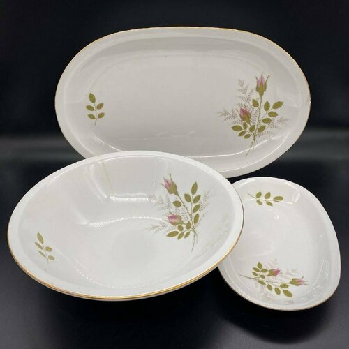 Набор из двух блюд разного размера и салатника, фарфор, деколь, золочение