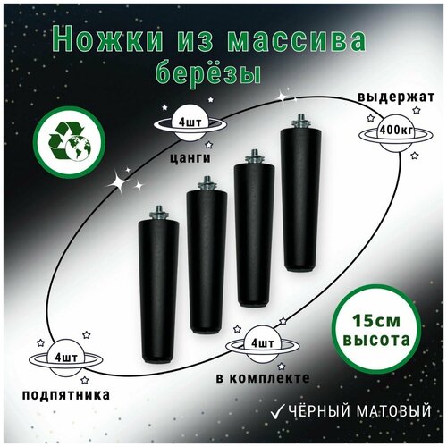 Ножки для мебели / Опоры для мебели деревянные 15см (чёрный матовый)