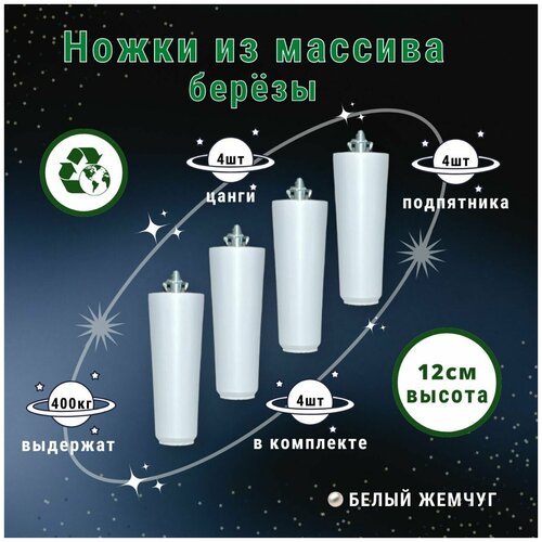 Ножки для мебели / Опоры для мебели деревянные 12см (белый жемчуг)