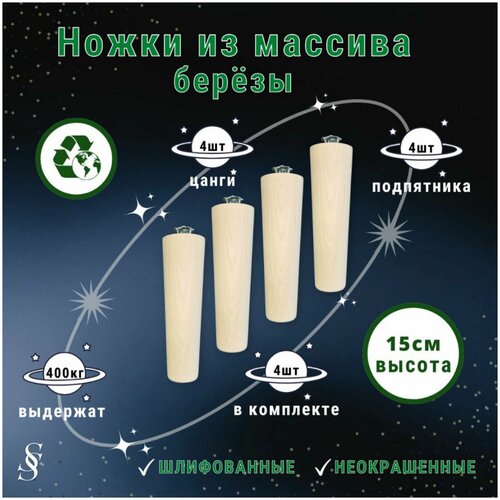 Ножки для мебели / Опоры для мебели деревянные 15см (неокрашенные с креплением)