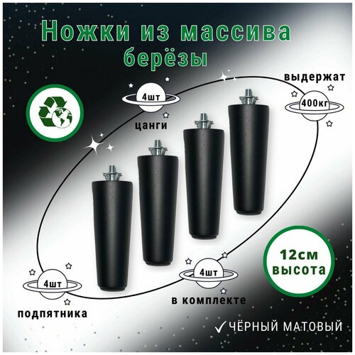 Ножки для мебели / Опоры для мебели деревянные 12см (черный матовый)