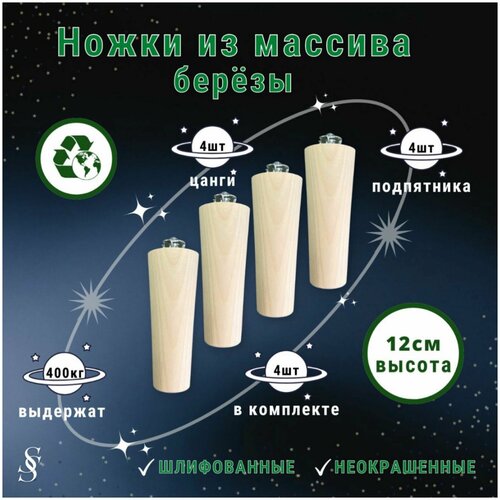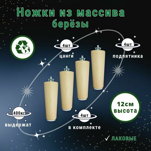 Ножки для мебели / Опоры для мебели деревянные 12см (лаковые)