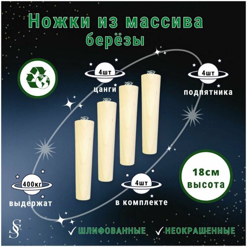 Ножки для мебели / Опоры для мебели деревянные 18см (неокрашенные с креплением)